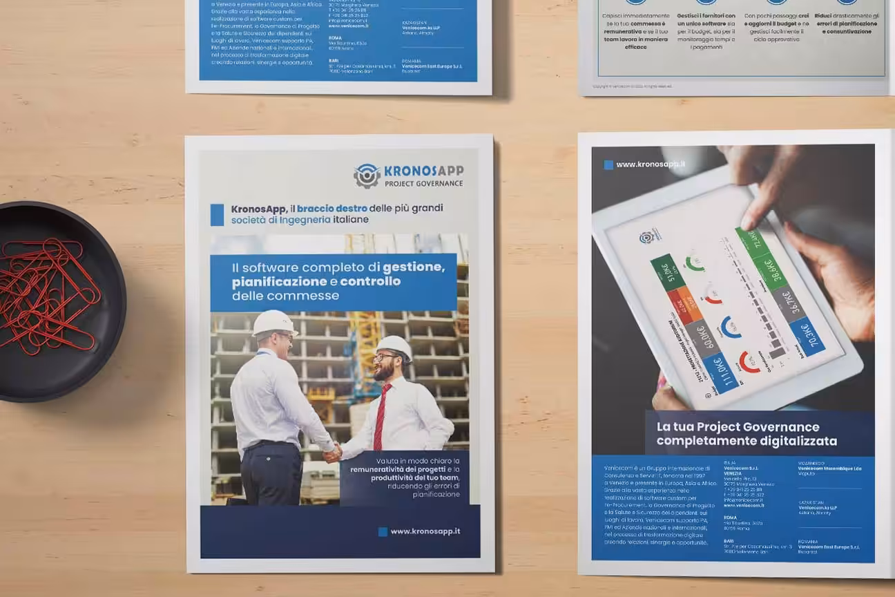 My work primarily focused on institutional leaflets, which provide a detailed overview of the company and the services it offers. Additionally, I worked on specific product brochures, where I thoroughly described the features and solutions provided by Venicecom. This targeted approach allows for a detailed presentation of the company’s range of services and products, addressing the specific needs of clients.