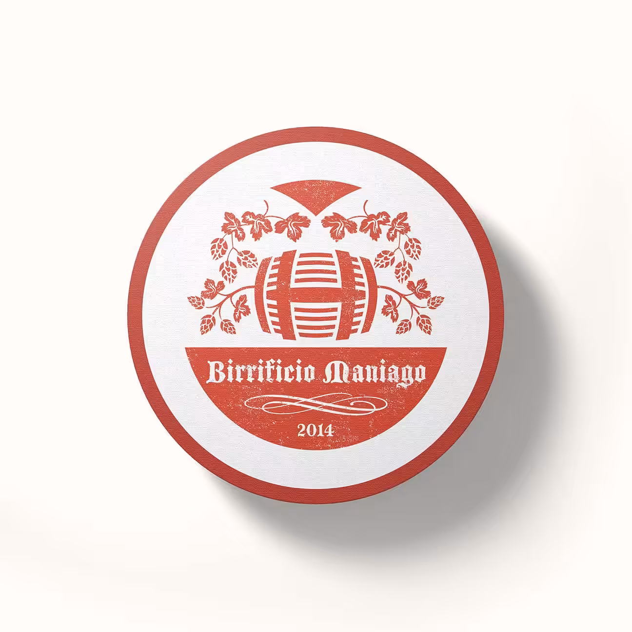 The first challenge was to create a logo that encapsulated the grunge and vibrant atmosphere Alice envisioned. The result was an illustration featuring a barrel surrounded by hops, highlighted by a subtle “weathered” effect that evokes the grunge style. This logo has become the recognizable emblem of Maniago Brewery, representing the brand’s unique personality.