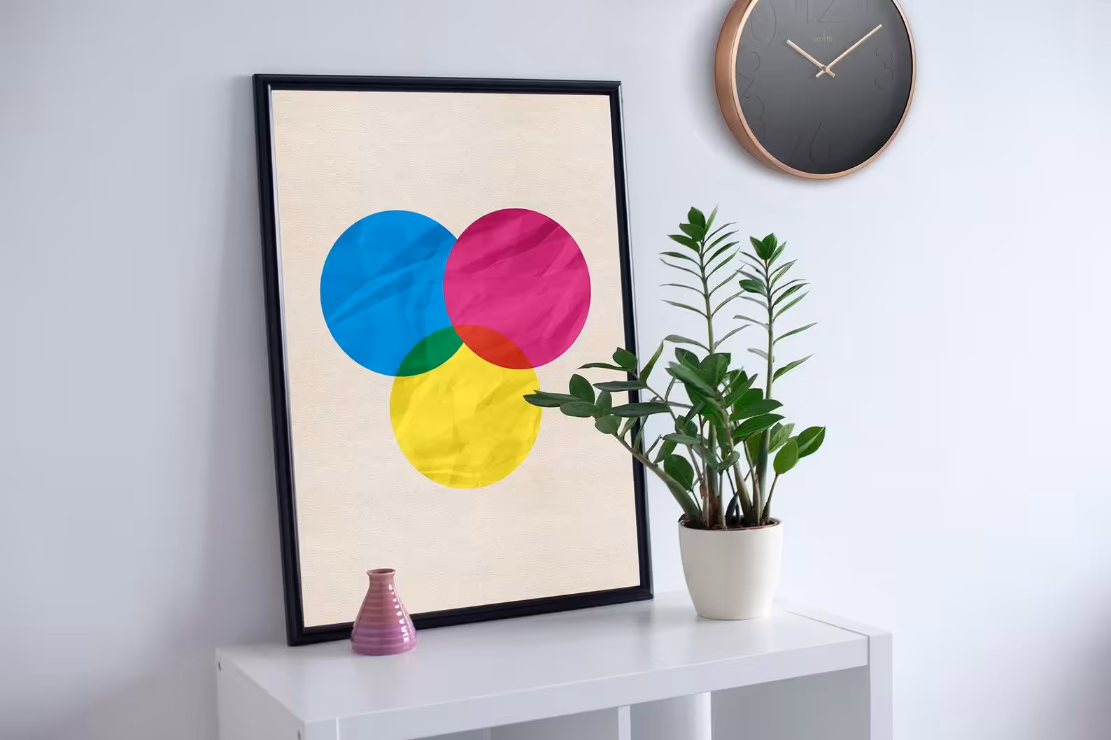 My passion for design fully manifests in these purely graphic posters. Each creation is the result of careful research and a creative process aimed at capturing the harmony of shapes and colors in a simple and elegant way. The inspiration drawn from geometric and minimalist art is reflected in every detail, transforming lines, points, and basic shapes into graphic works that bring me joy.