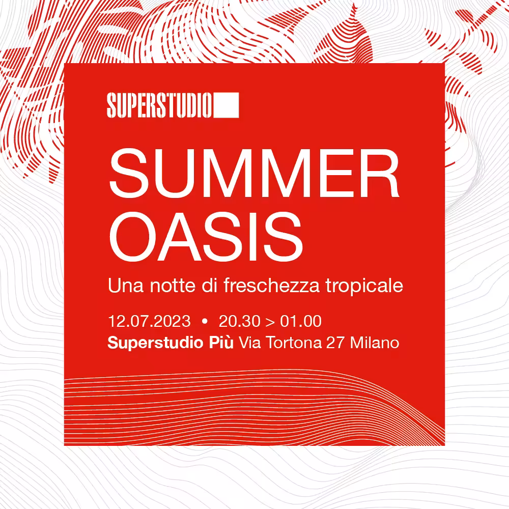 In the realm of event organization and management, my involvement with Superstudio, a renowned company based in Milan, represented an important opportunity to work with a significant player in the market. On July 12, 2023, Superstudio brought to life an event titled “Summer Oasis,” transforming the enchanting garden of Superstudio Più into a refreshing tropical oasis. For this event, I was responsible for the concept and management of the graphic design.