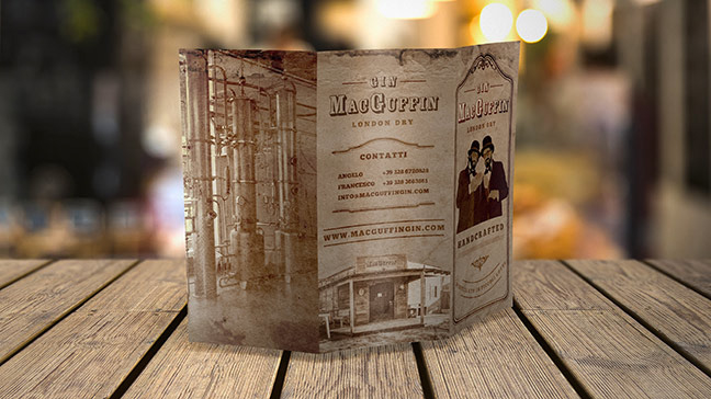 Oltre all’etichetta, ho creato il materiale di comunicazione per gli stand e le fiere, compresi i pieghevoli e i sottobicchieri. Tutti questi elementi hanno mantenuto lo stile old-west, trasportando il pubblico in un viaggio nel tempo attraverso il mondo del Gin MacGuffin.