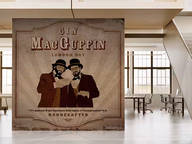 Per realizzare questa visione, mi sono ispirato a una foto scattata nella distilleria, catturando l’autenticità e lo spirito dell’azienda. L’etichetta del Gin MacGuffin è stata progettata con uno stile che richiama il vecchio West, con dettagli che rimandano ai saloon e all’atmosfera tipica di quei luoghi iconici. Questo design ha reso l’etichetta un elemento distintivo, evocando l’immaginario e il fascino di un’epoca passata.