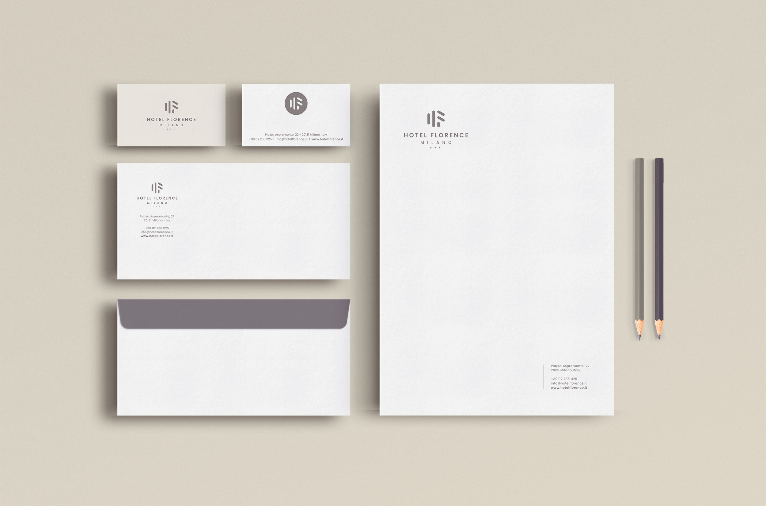 Il lavoro di creazione del logo e dell’immagine coordinata per l’Hotel Florence di Milano ha segnato una trasformazione significativa. L’operazione di svecchiamento ha portato il brand dell’hotel in una nuova dimensione di modernità e accoglienza, catturando l’essenza dell’esperienza che gli ospiti possono aspettarsi durante il loro soggiorno. L’uso della costruzione geometrica, forme ammorbidite, colori tenui e un font moderno ha creato un marchio visivamente attraente e coerente, riflettendo la mission dell’hotel di offrire un’esperienza ospitale di alta qualità.