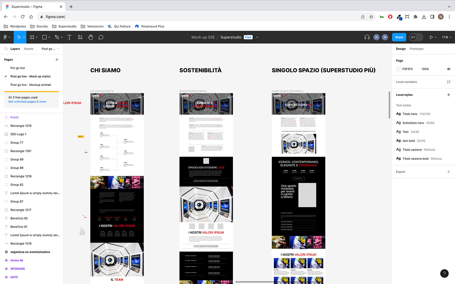 Il lavoro grafico per il sito web di Superstudio Events ha cercato di trasmettere la professionalità, la versatilità e l’entusiasmo dell’azienda. L’alternanza di bianco e nero con tocchi di grigio ha creato un ambiente elegante e contemporaneo, mentre le immagini hanno reso tangibile l’ampia esperienza dell’azienda nel settore degli eventi.