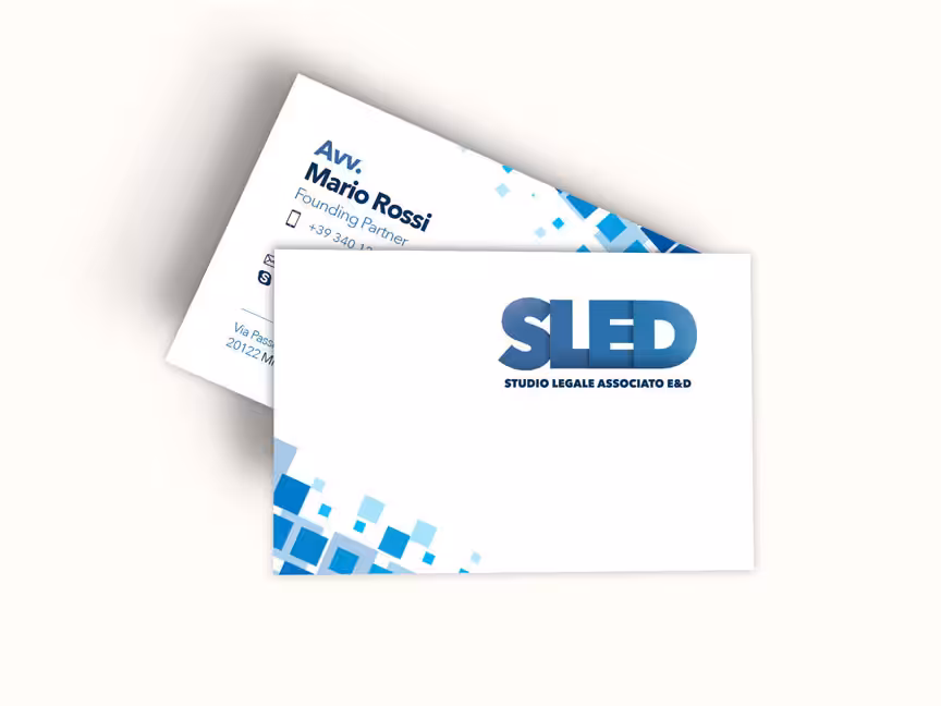 L’aspetto vincente di questo progetto risiede nell’accostamento audace tra la rigida forma del quadrato, riflessione dell’essenzialità di uno studio legale, e la dinamicità del logo e delle sue applicazioni. Questa combinazione crea un equilibrio che unisce la solidità e la professionalità richieste dal settore legale alla modernità e alla velocità di aiuto che SLED offre ai suoi clienti.